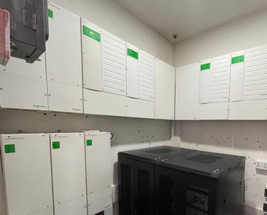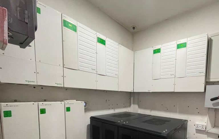 Optimize your energy infrastructure with our state-of-the-art energy storage solutions. This setup, featuring Schneider Electric’s Conext system, is designed to store and manage energy efficiently for residential and commercial applications. With robust battery storage and intelligent power management, this system ensures reliable energy availability, improved efficiency, and enhanced protection for your electrical needs. Experience the future of sustainable energy management today.